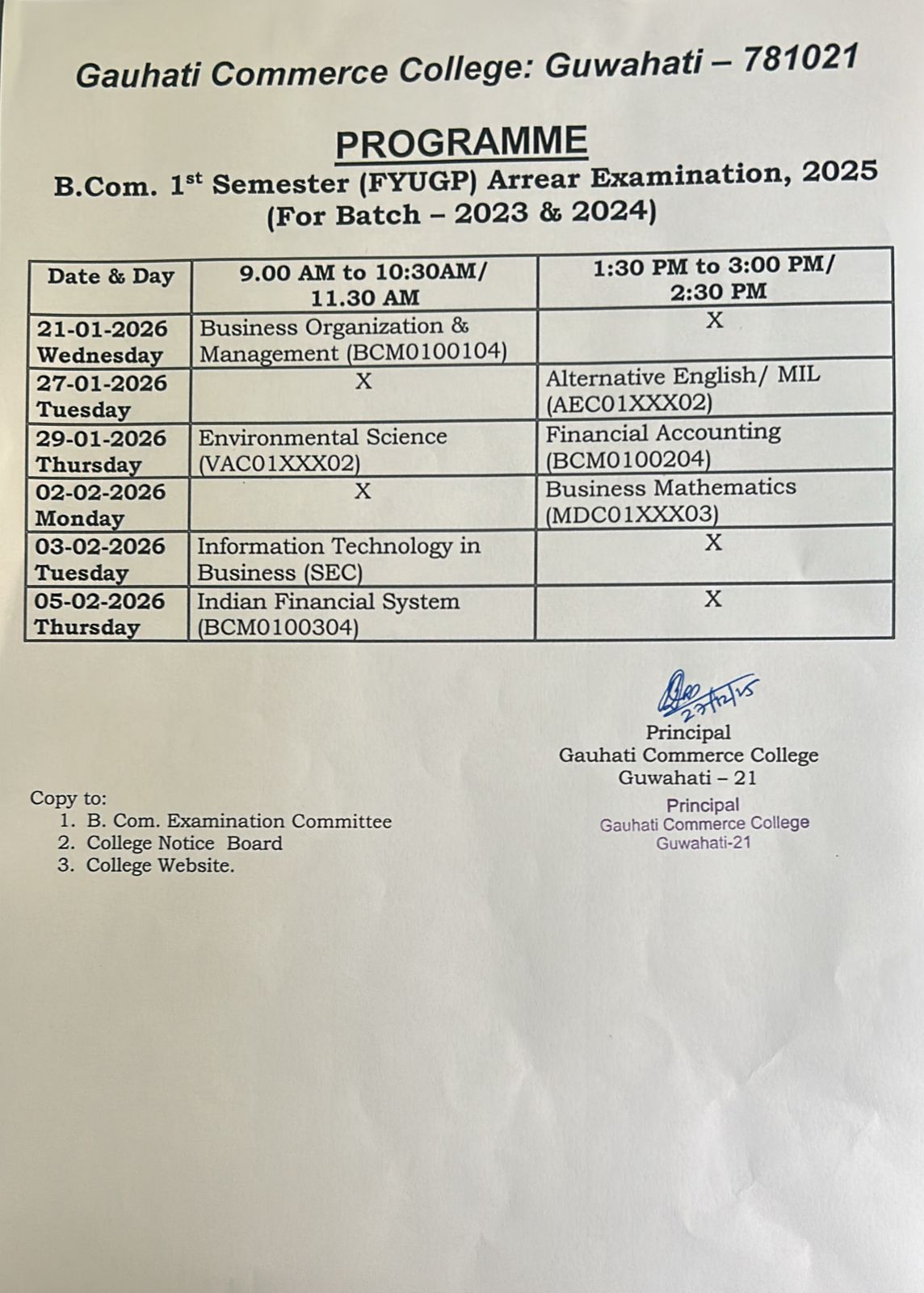 B.Com. 1st Sem Arrear Programme